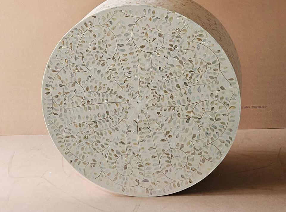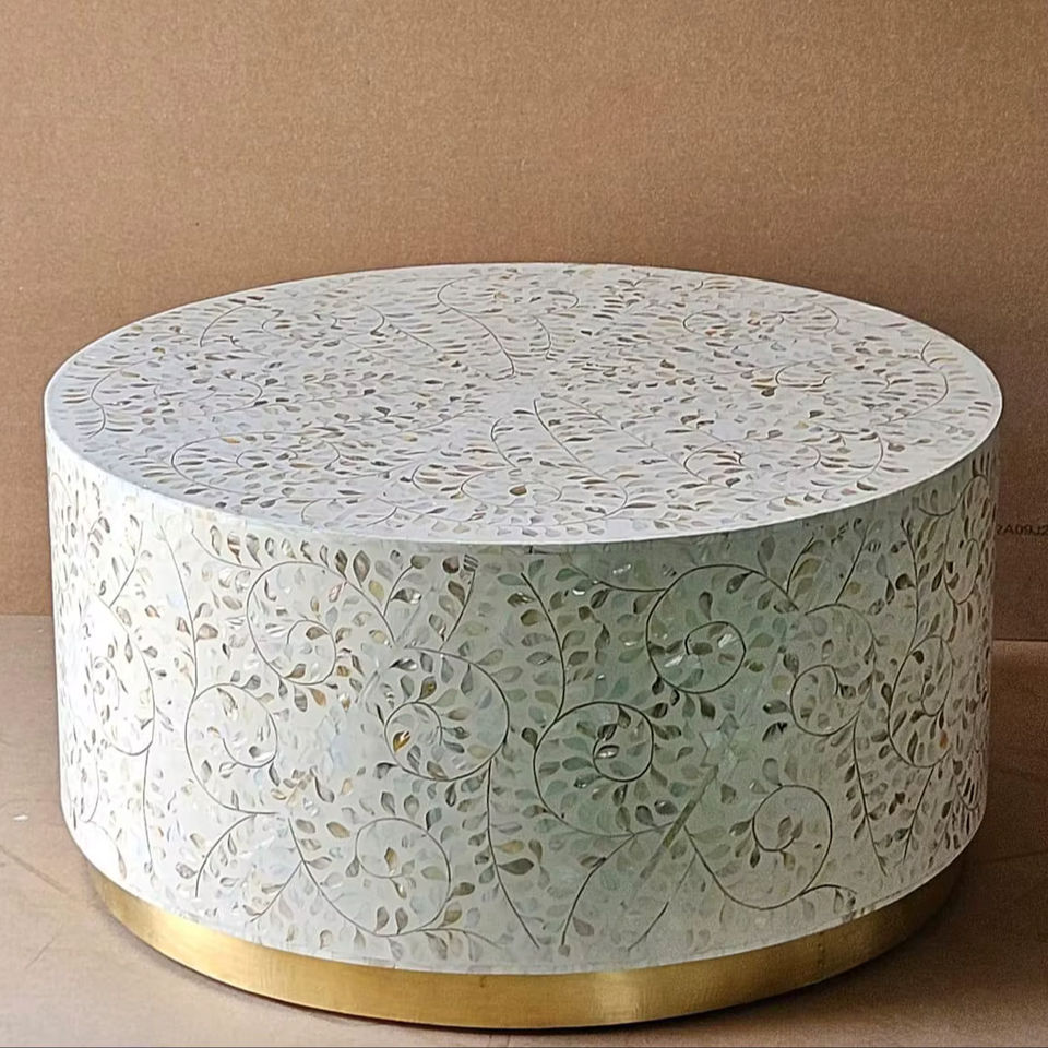Mesa con Incrustaciones de Hueso de ILAHI, Diseño Moderno con Detalles de Ágata, Almacenamiento Portátil, Muebles para el Hogar