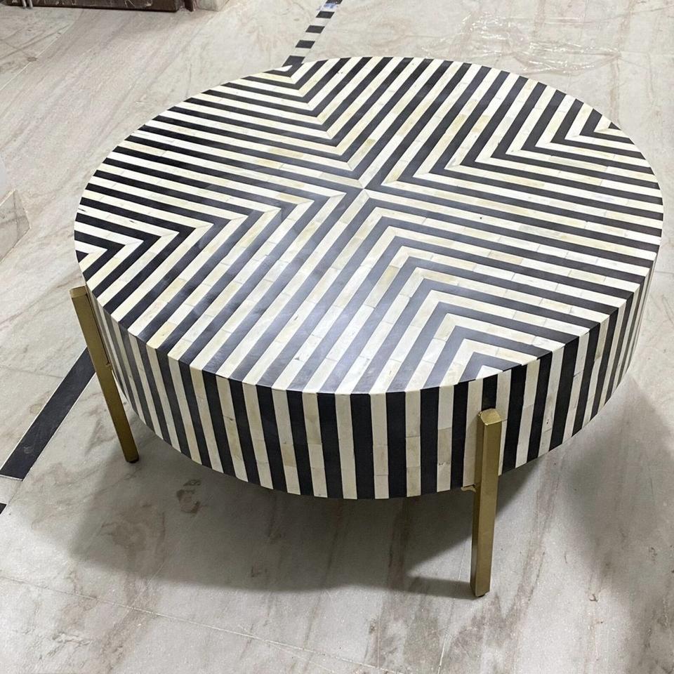 Mesa con Incrustaciones de Hueso de ILAHI, Diseño Moderno con Detalles de Ágata, Almacenamiento Portátil, Muebles para el Hogar