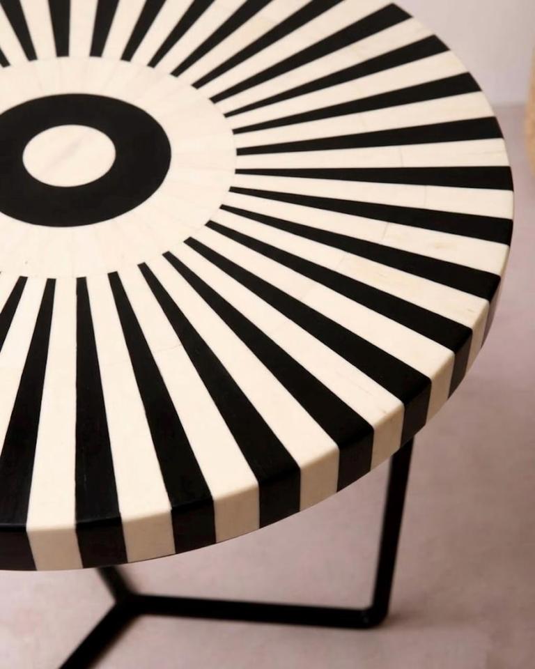 Mesa con Incrustaciones de Hueso de ILAHI, Diseño Moderno con Detalles de Ágata, Almacenamiento Portátil, Muebles para el Hogar