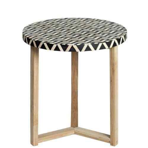 Mesa con Incrustaciones de Hueso de ILAHI, Diseño Moderno con Detalles de Ágata, Almacenamiento Portátil, Muebles para el Hogar
