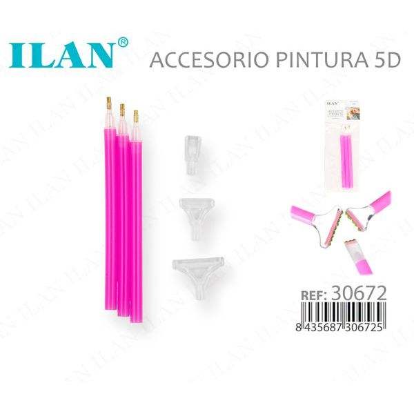 ILAN - Juego de Accesorios de Plástico para Pintar con Diamantes, 5D, Portátil, Color Rosa, 3 Piezas