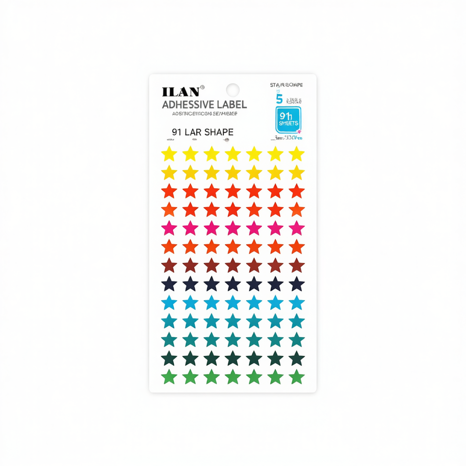 Etiqueta Adhesiva ILAN en Forma de Estrella, 91 Etiquetas, 5 Hojas, 11.5x17cm, Coloridas, para Etiquetas de Ropa