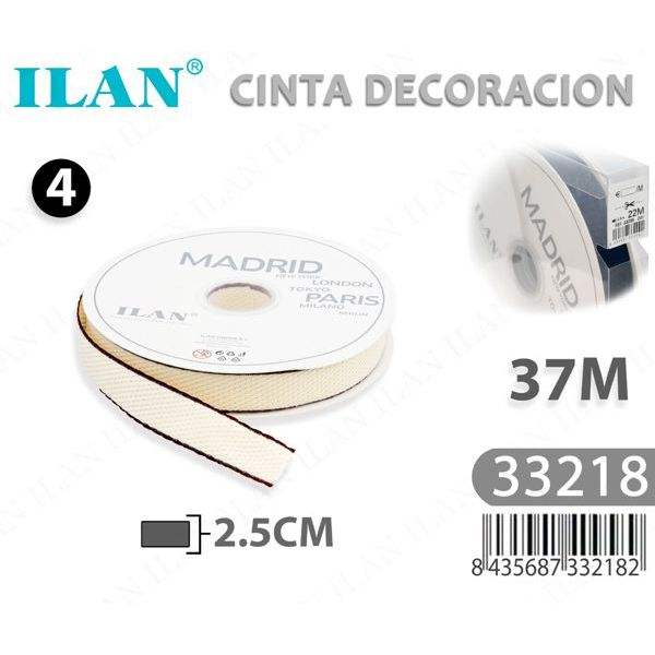 Cinta Decorativa ILAN de 2.5 cm de Ancho y 37 m de Largo, Diseño Madrid, para Manualidades y Decoración