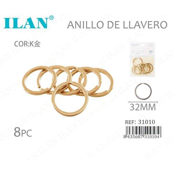 Llavero ILAN de 32 mm, color dorado, 8 piezas para accesorios de llaveros