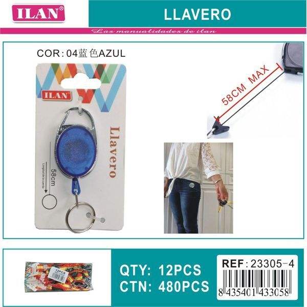 Llavero ILAN con cordón retráctil de 58 cm máximo, color azul, para llaves y tarjetas de identificación