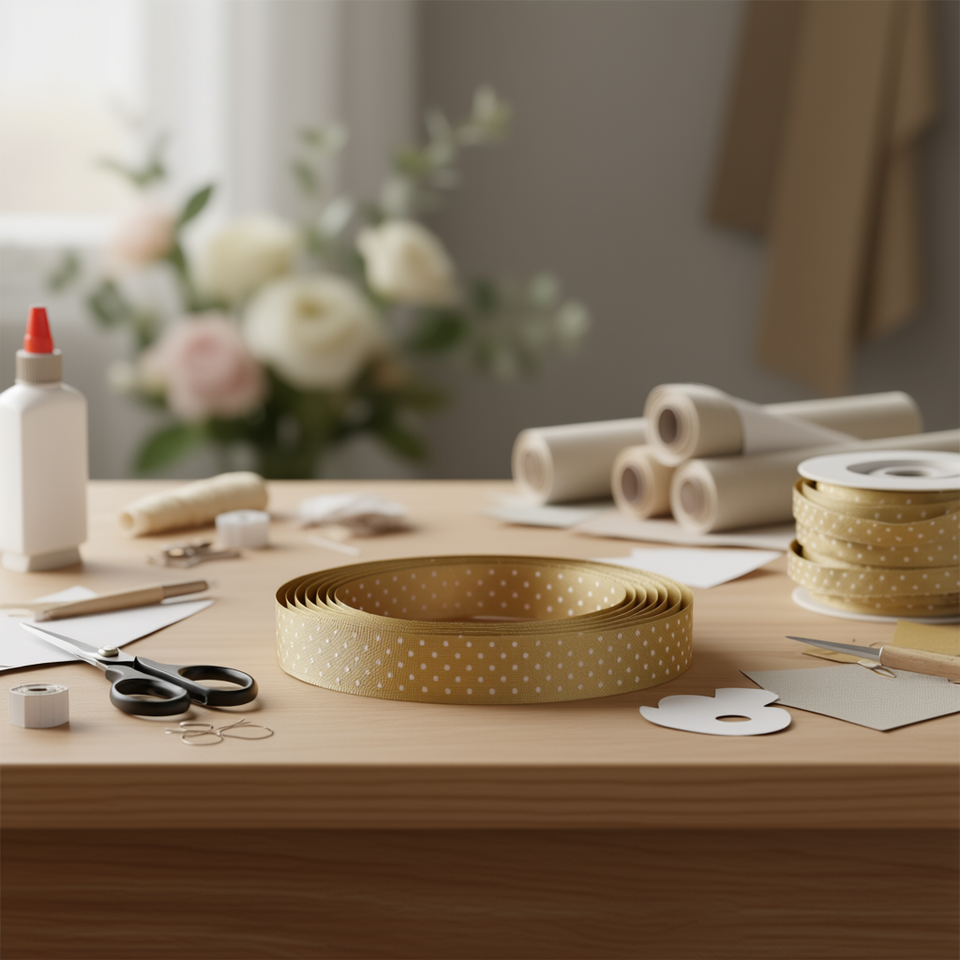 Cinta de Lino ILAN de 35x200 cm con Puntos Blancos y Dorados para Decoración y Manualidades