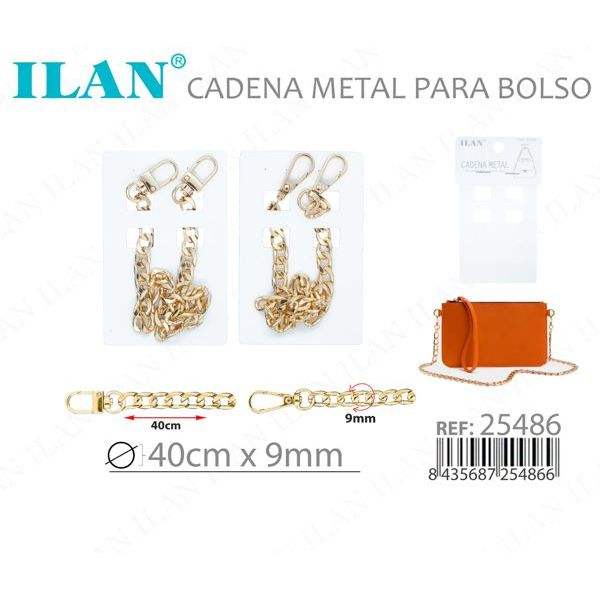 Cadena metálica ILAN para bolso de mano, 40 cm x 9 mm, color dorado, accesorio para bolso