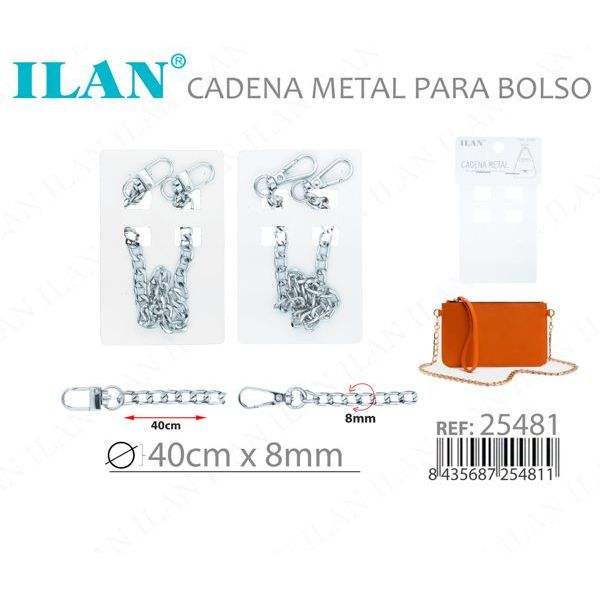 Cadena metálica ILAN para bolso, 40 cm x 8 mm, color plateado