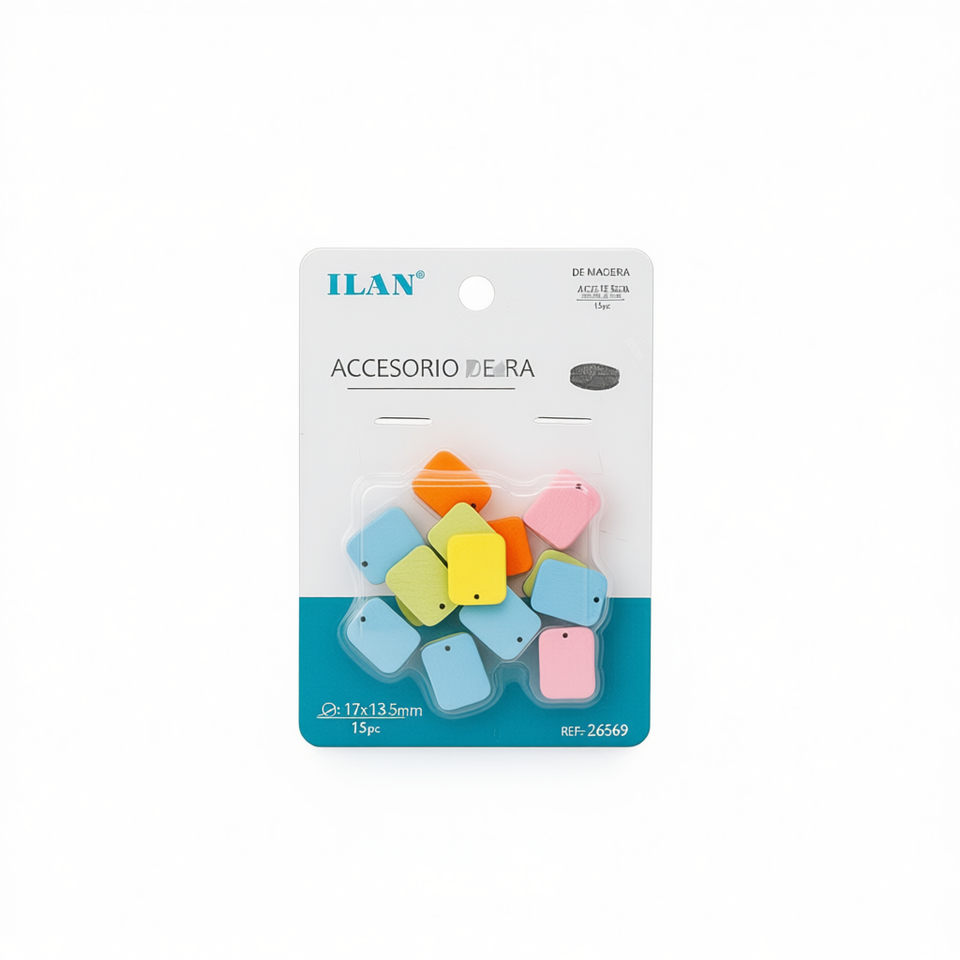 ILAN Accesorio Rectangular de Madera 17x13.5mm 15 Piezas Decoración Artesanal