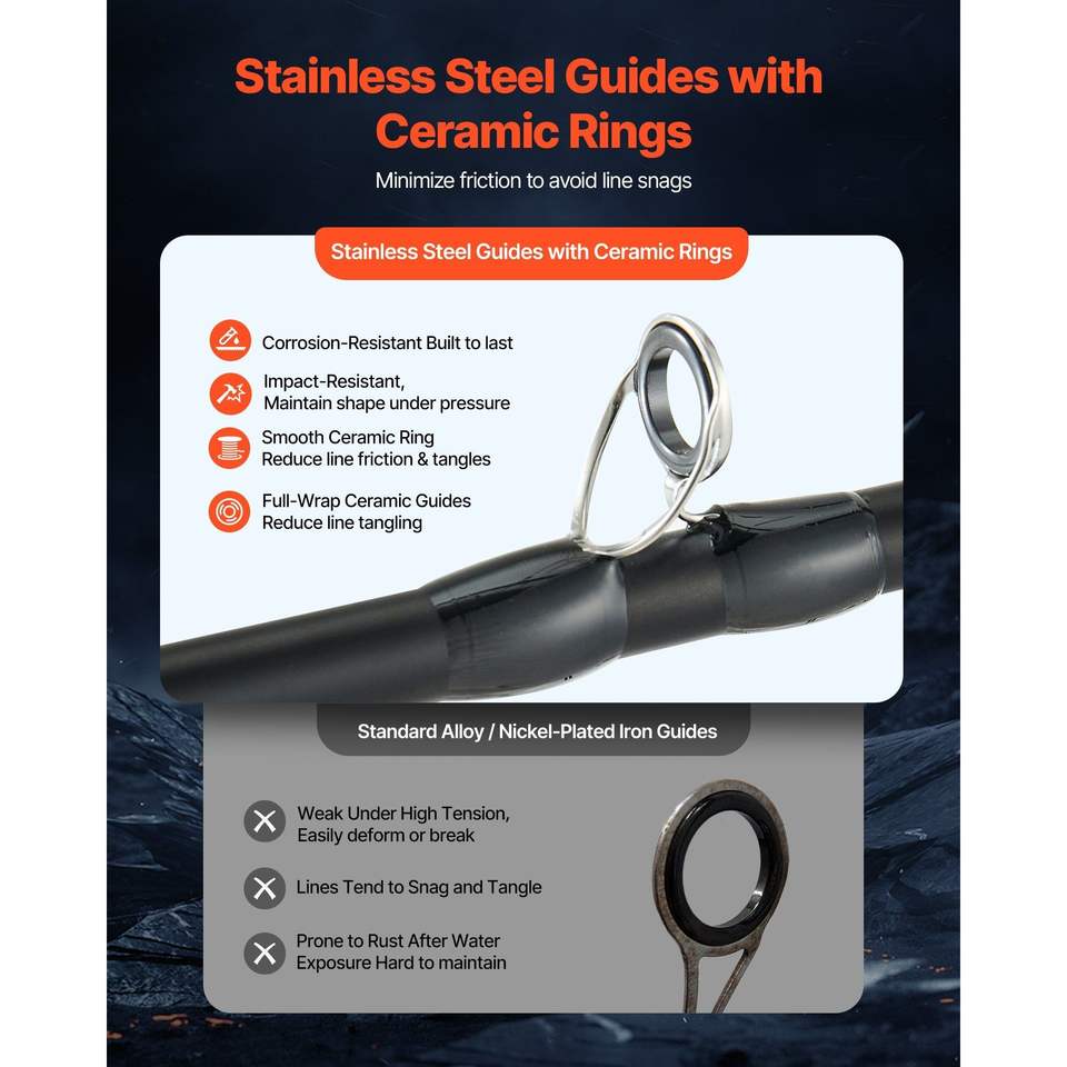 Combo de Caña y Carrete de Pesca de Fibra de Carbono IM7, Sistema de 7+1 Rodamientos de Bolas, Relación de Engranajes 7.0:1, Mango de Corcho, Guías de Acero Inoxidable, Cerámica