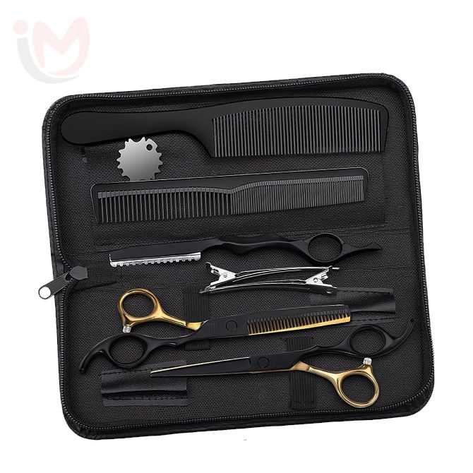 IMANS ENTERPRISES Juego de Tijeras de Peluquería de Acero Inoxidable de 6.5 Pulgadas con Tijeras de Entresacar, Herramienta Profesional para Barbería, Color Personalizado