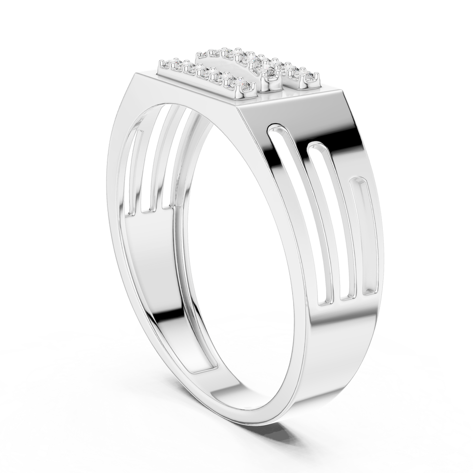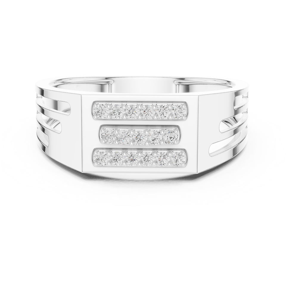 Anillo Imperial de Diamantes Cultivados en Laboratorio, Corte Redondo, Triple Barra, Oro Blanco de 18 Quilates, Chapado en Rodio, para Boda/Compromiso/Regalo/Uso Diario en la Oficina, para Hombre