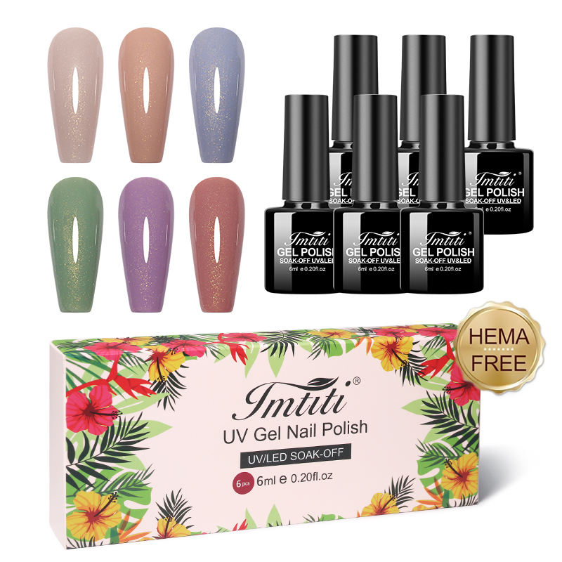 IMTITI Fábrica Mayorista, Set de 6 Colores de Esmalte de Uñas en Gel Dorado Fluido, Esmalte de Gel Sin Hema ni TPO, Fábrica de Esmalte de Gel, MOQ Bajo, Logotipo Personalizado