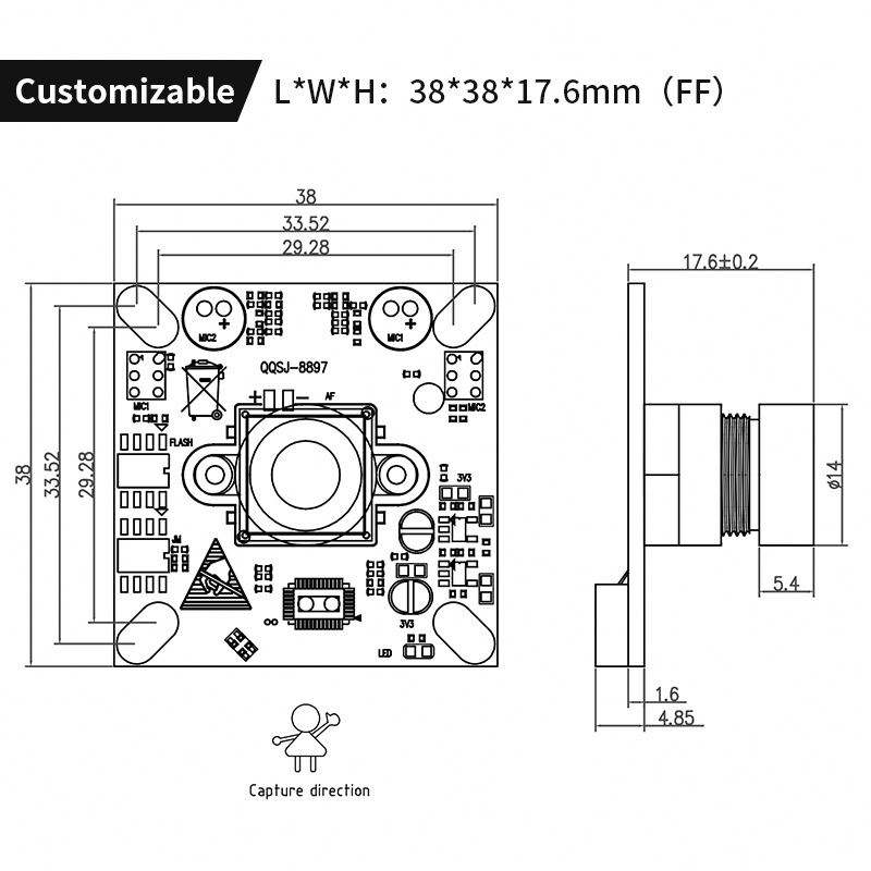 Módulo de cámara de vigilancia USB gran angular de enfoque fijo IMX335 2KP 5MP HD