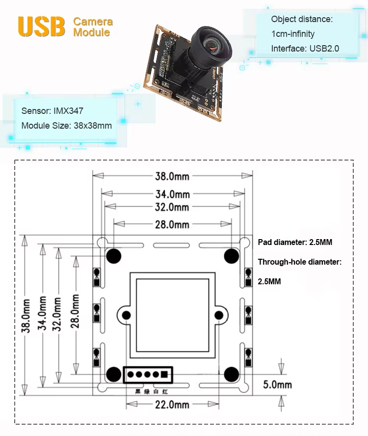 Módulo de Cámara con Sensor CMOS IMX347, Imagen HD de 4MP con Interfaz USB para Cámara de Coche Inteligente Dual con ADAS y DMS