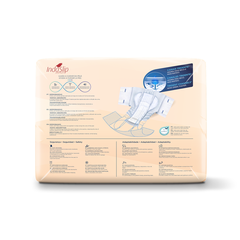 Absorción rápida::Núcleo absorbente Premium para absorber una orina difusa y rápidamente.