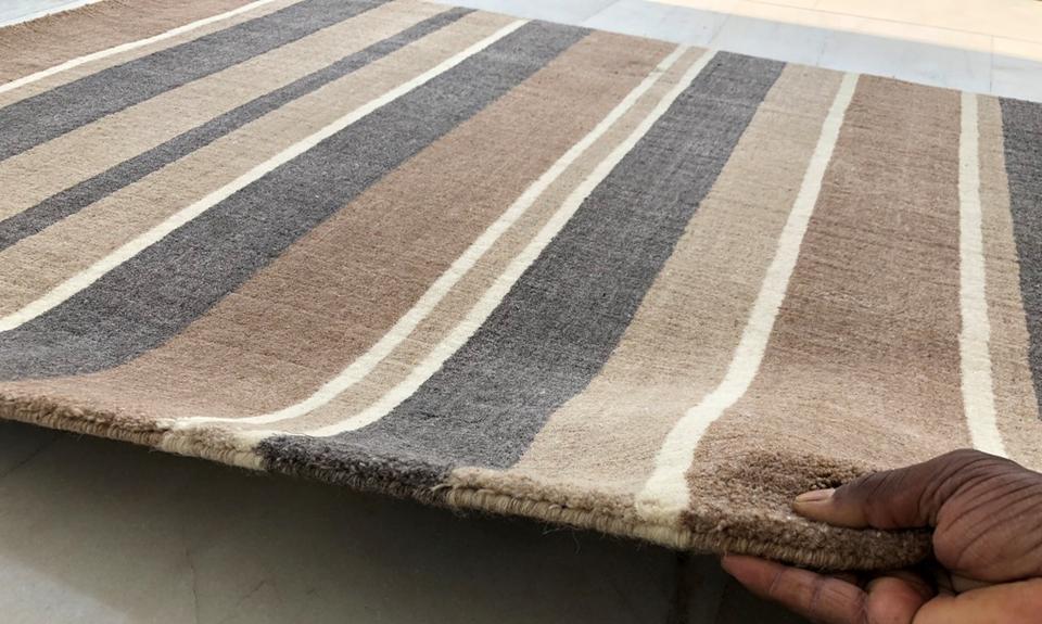 Alfombra Moderna y Elegante de Lana Tejida a Rayas, Antideslizante, Hecha a Mano en India, Directo de Fábrica para Uso Doméstico