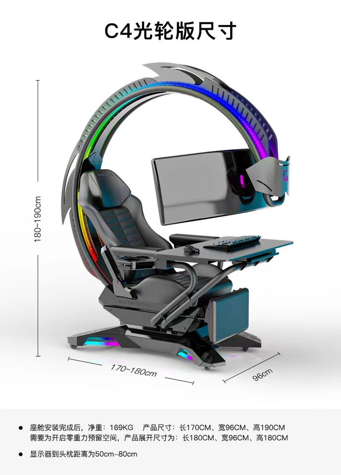 INGREM C4 Owlet, silla reclinable de gravedad cero, cabina, altavoz de diente azul, soporte lumbar, soporte de asiento de carreras, 1 Monitor, silla, cabina