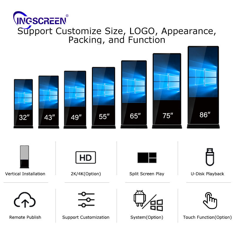 Monitor táctil INGSCREEN, Panel de pantalla publicitaria, pantalla de vídeo Hd, cartelera, señalización Digital de 32 pulgadas y pantallas, soporte de suelo, quiosco