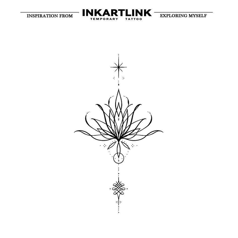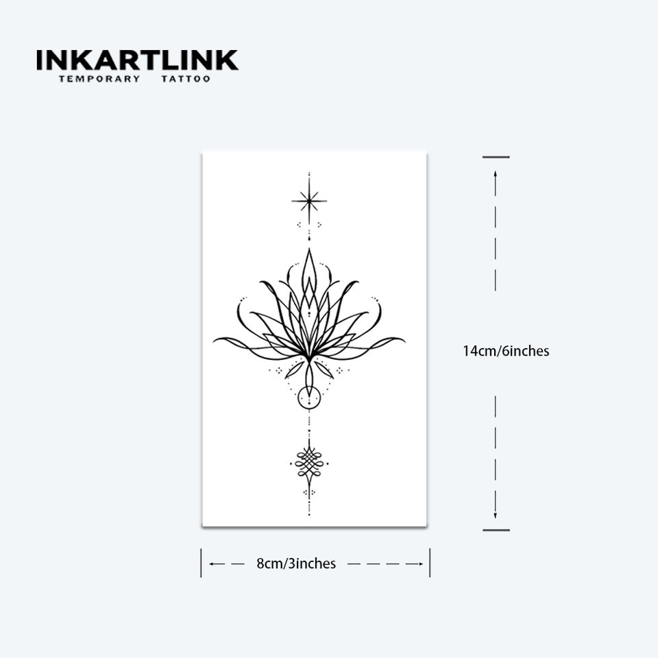 INKARTLINK Pegatina de Tatuaje Minimalista de Loto, Diseño Geométrico de Estrella y Líneas, Arte Corporal Semipermanente Herbal de 15 Días, Venta al por Mayor