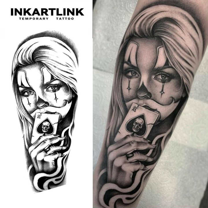 INKARTLINK - Pegatina de Tatuaje para el Cuerpo, Pegatina de Tatuaje de Papel, Diseño Realista de Payaso, Resistente al Agua, Ecológico, Larga Duración, 15 Días