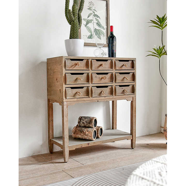 Mesa de consola rústica de granja de 9 cajones personalizada INNOVA, muebles antiguos de madera antigua para entrada, sala de estar, almacenamiento