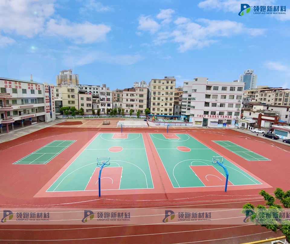 Suelo deportivo certificado Eco-Safe INOLP silicona reciclada PU respetuoso con el medio ambiente para patio escolar y cancha de baloncesto