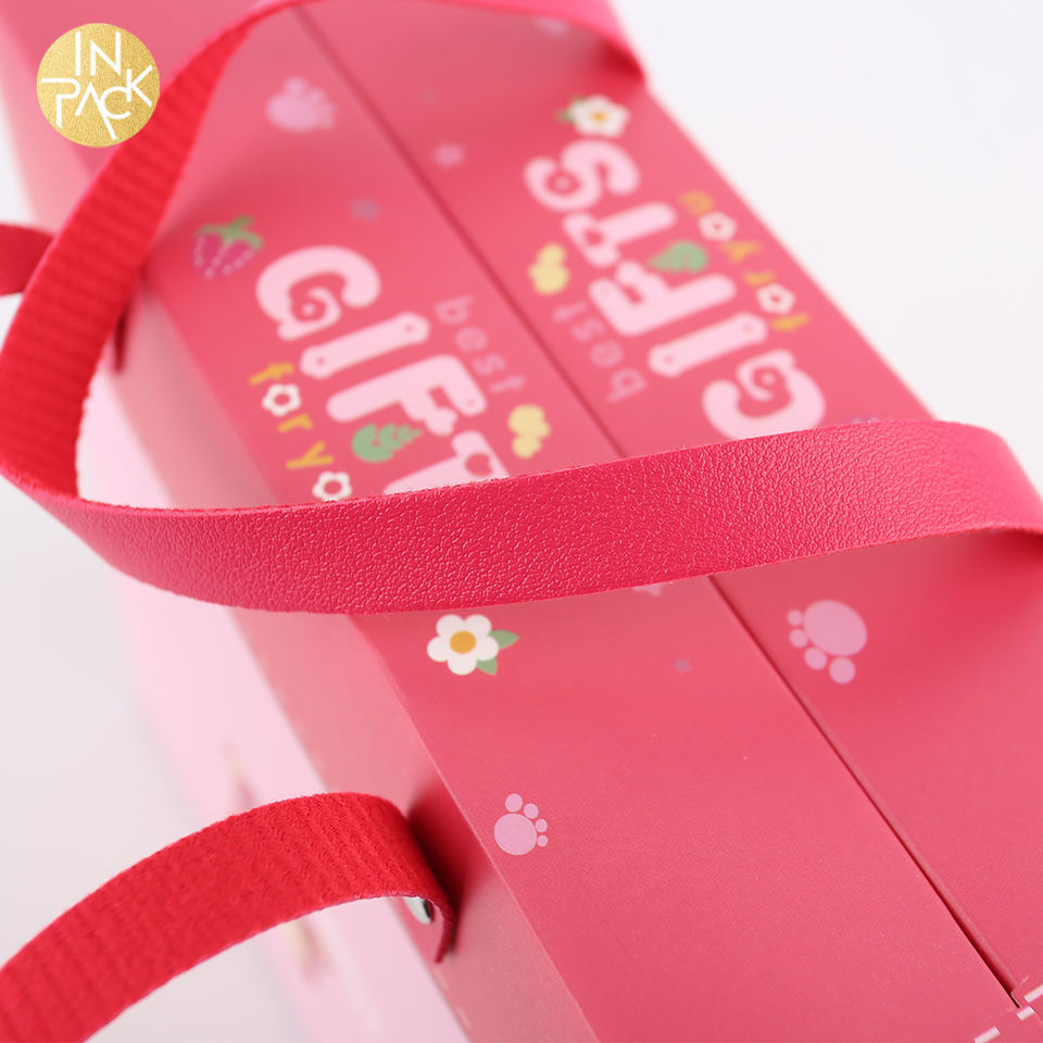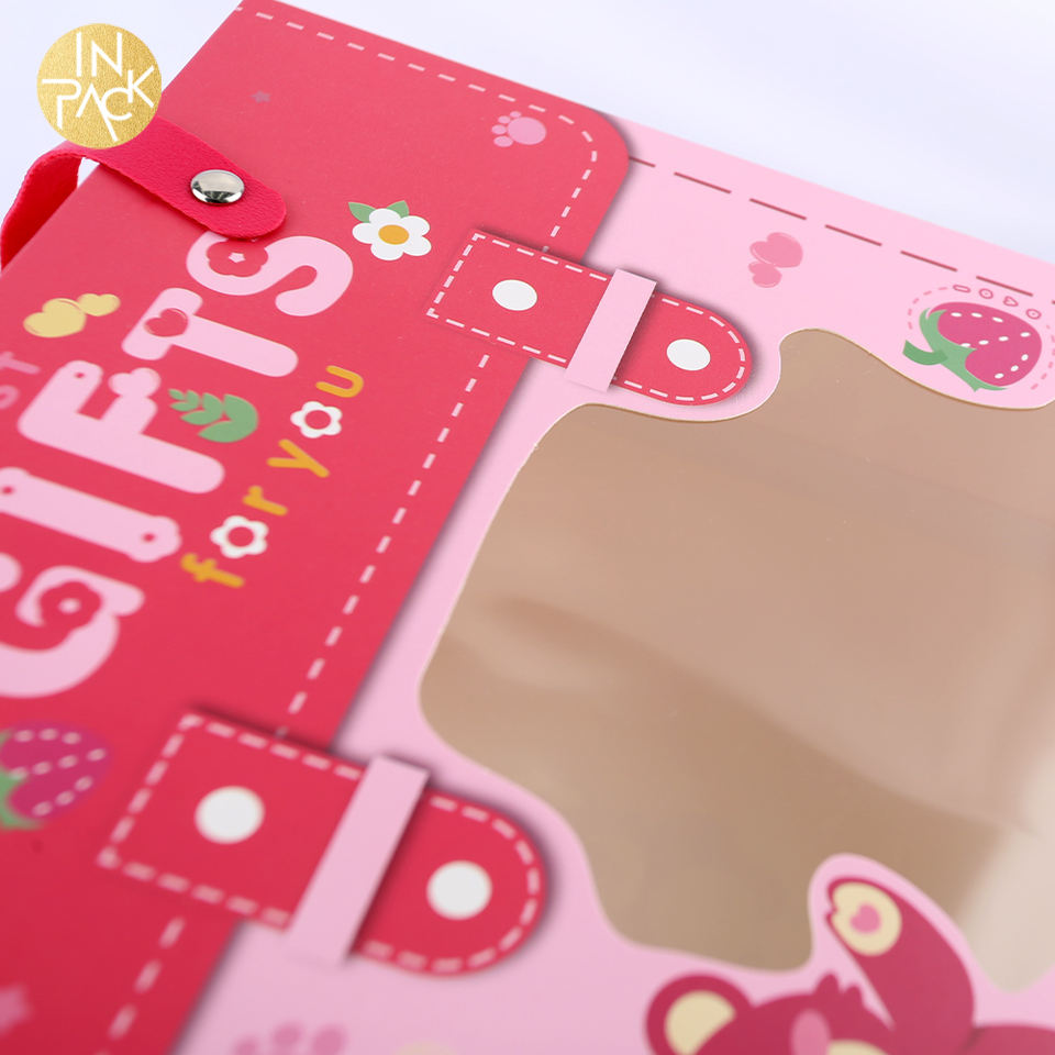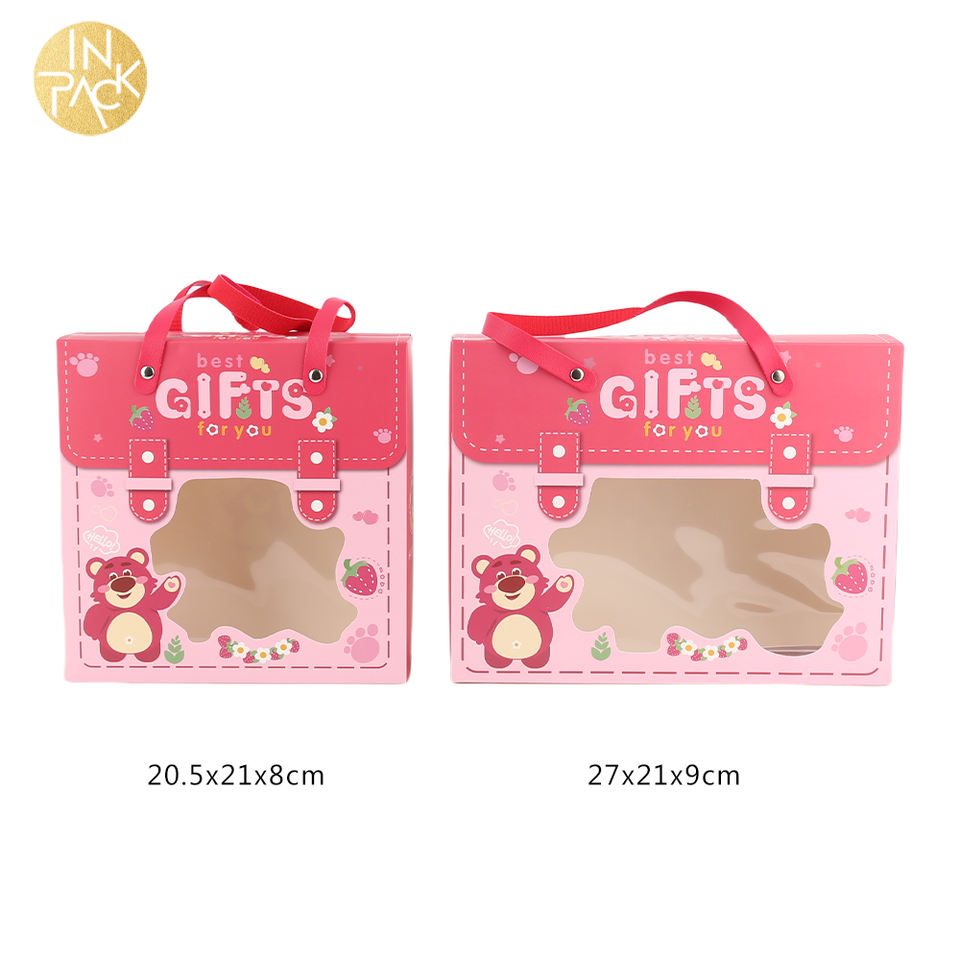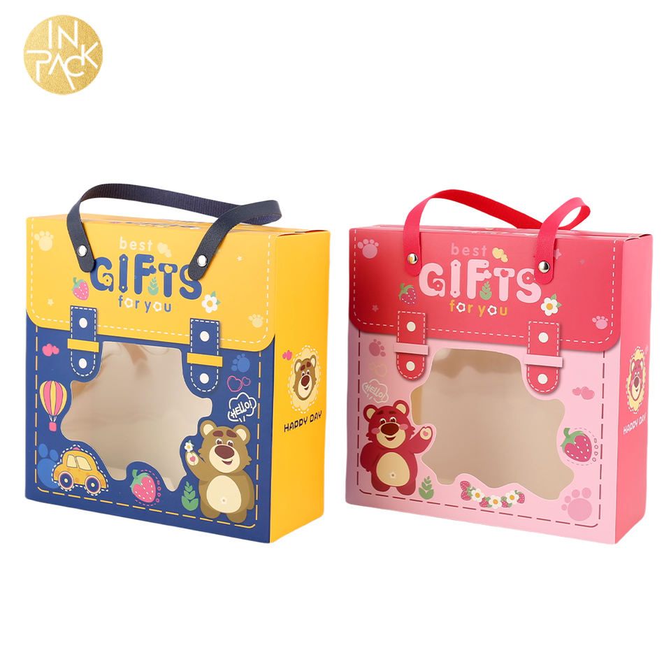INPACK Diseños personalizados de dibujos animados Kid Gift Box Set Bolsa de regalo grande Ventana de cartón blanco Bolsa de regalo de cumpleaños transparente Caja de embalaje