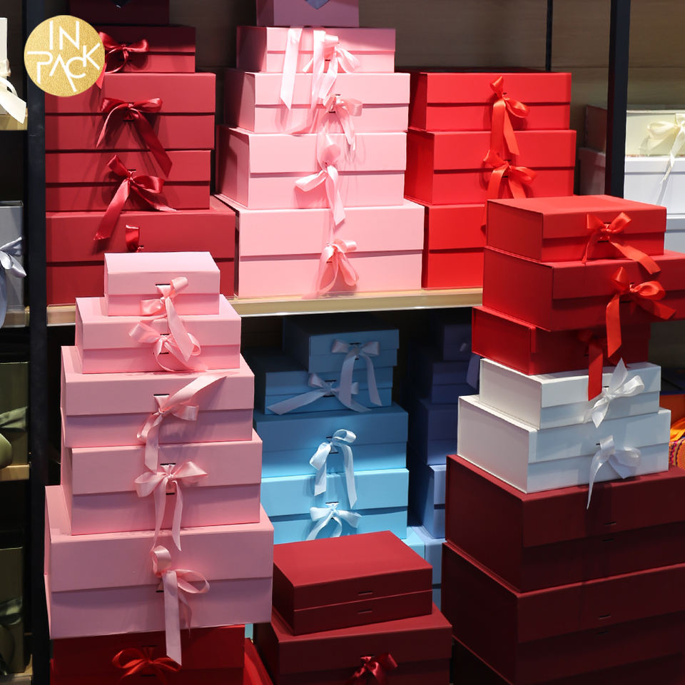 INPACK Lazo de cinta grande Color perlado Caja magnética Embalaje de regalo Cierre magnético plegable Caja de regalo de papel rígido Caja de regalo de Navidad
