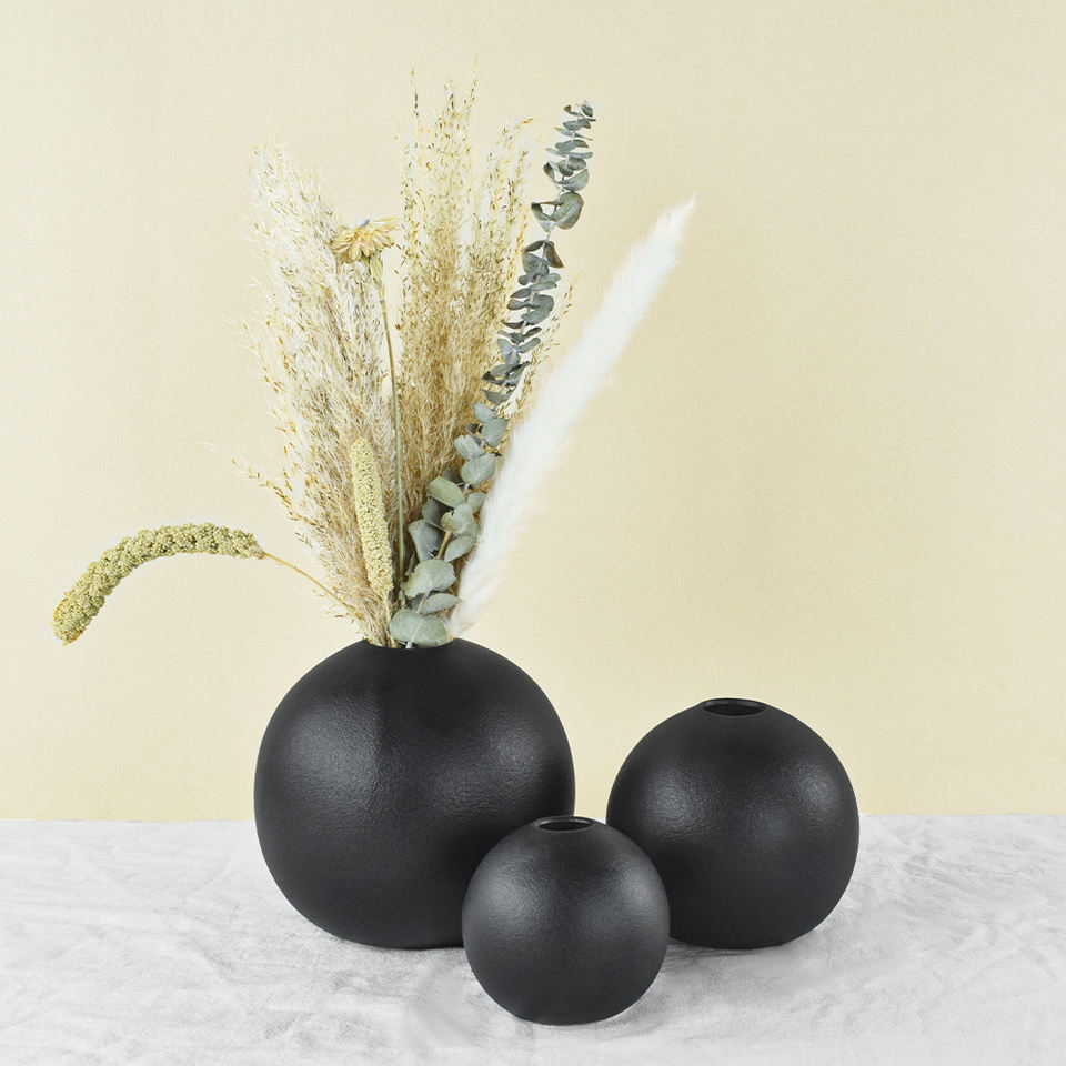 Jarrón de cerámica con forma de bola INS, Juego de 3 jarrones modernos de cerámica gruesa para flores secas, florero decorativo para centro de mesa
