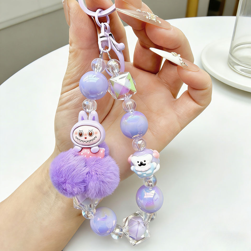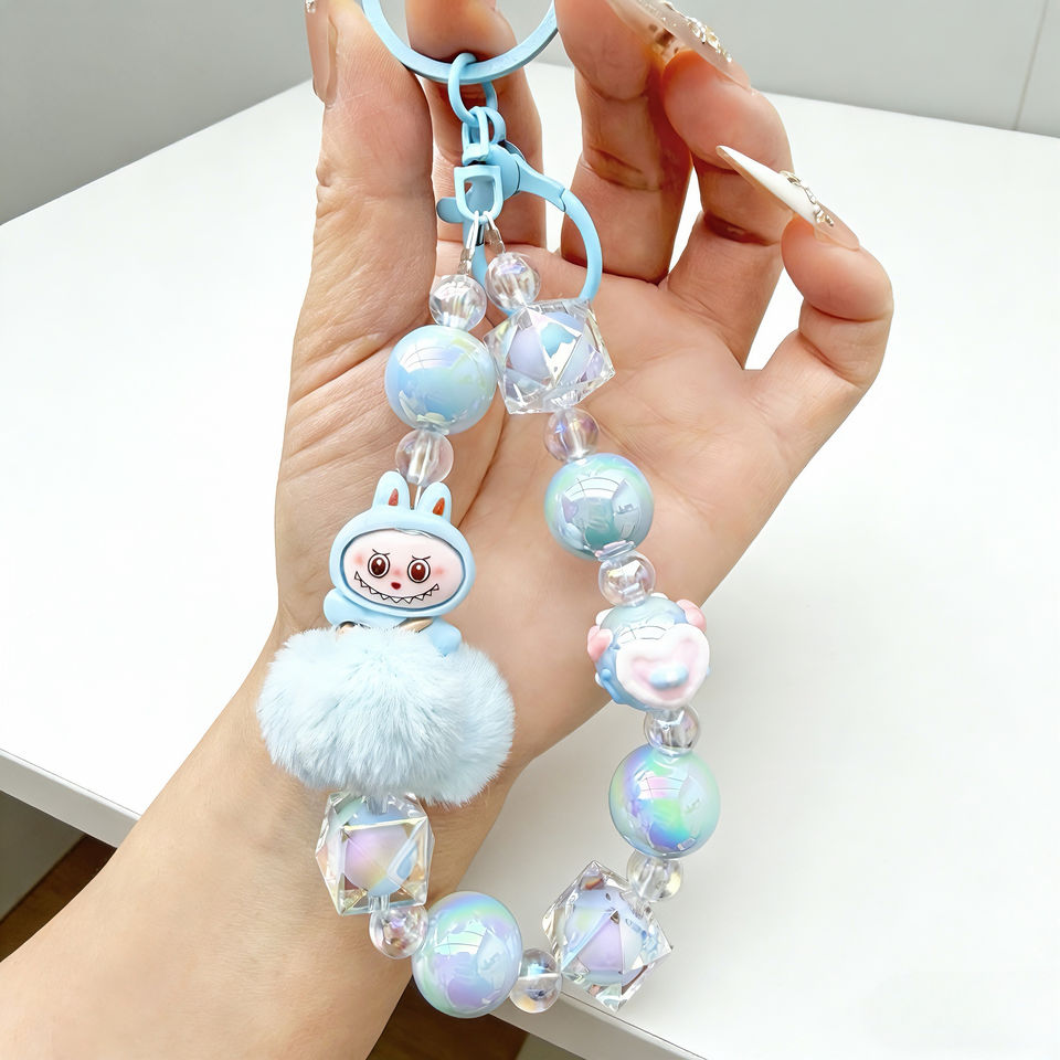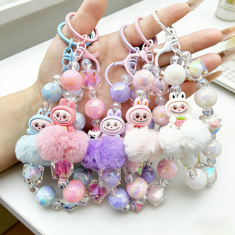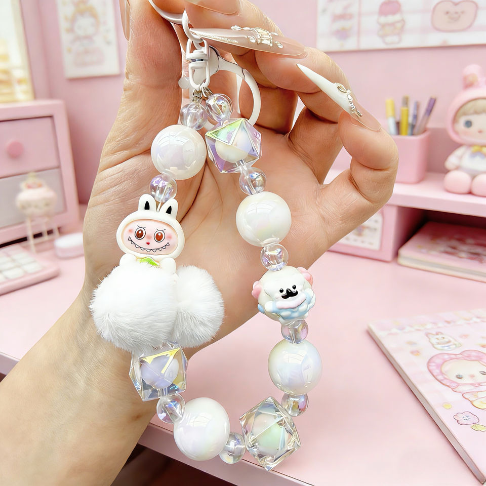 Llavero de cuentas rosa INS, accesorio bonito, llavero de dibujos animados rosa, colgante para bolso, cordón para teléfono móvil