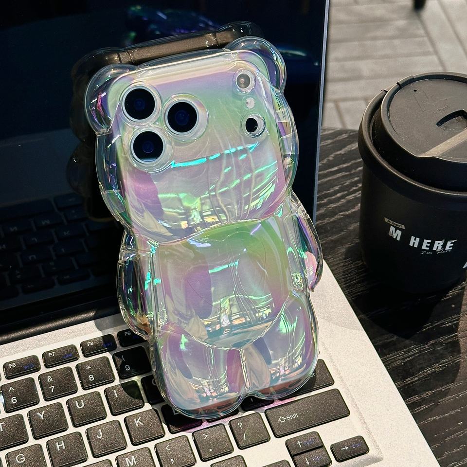 Funda de teléfono INS Fashion Luxury con oso 3D colorido degradado y diseño lindo