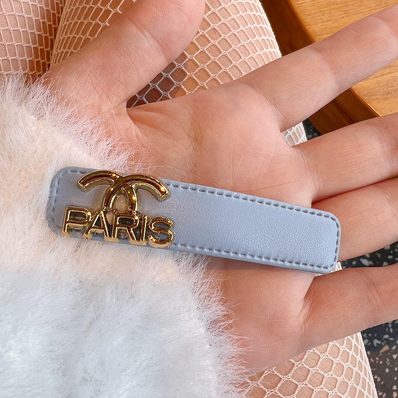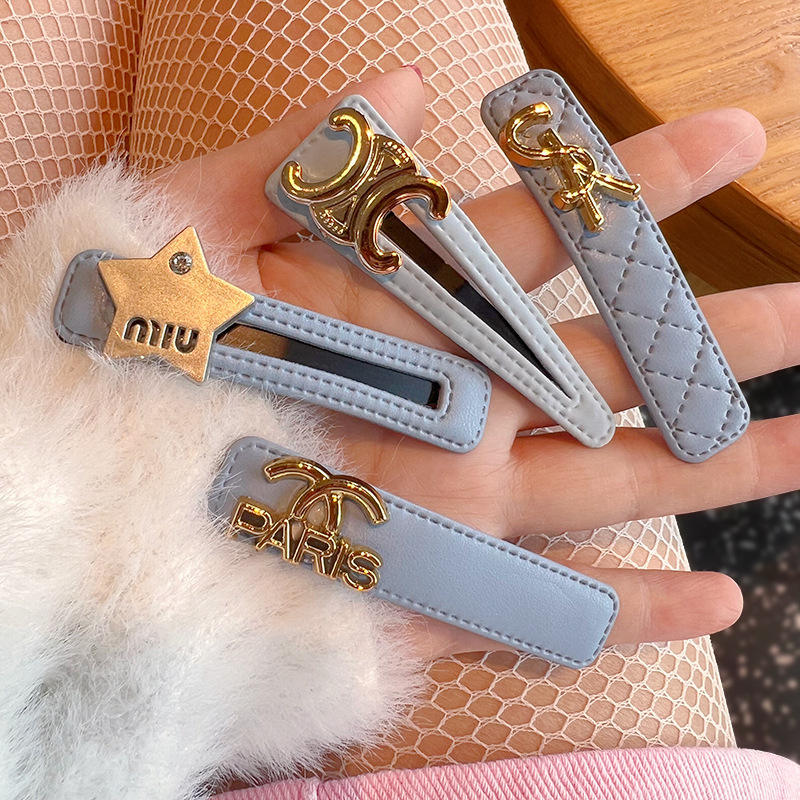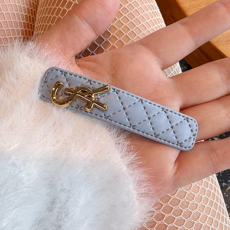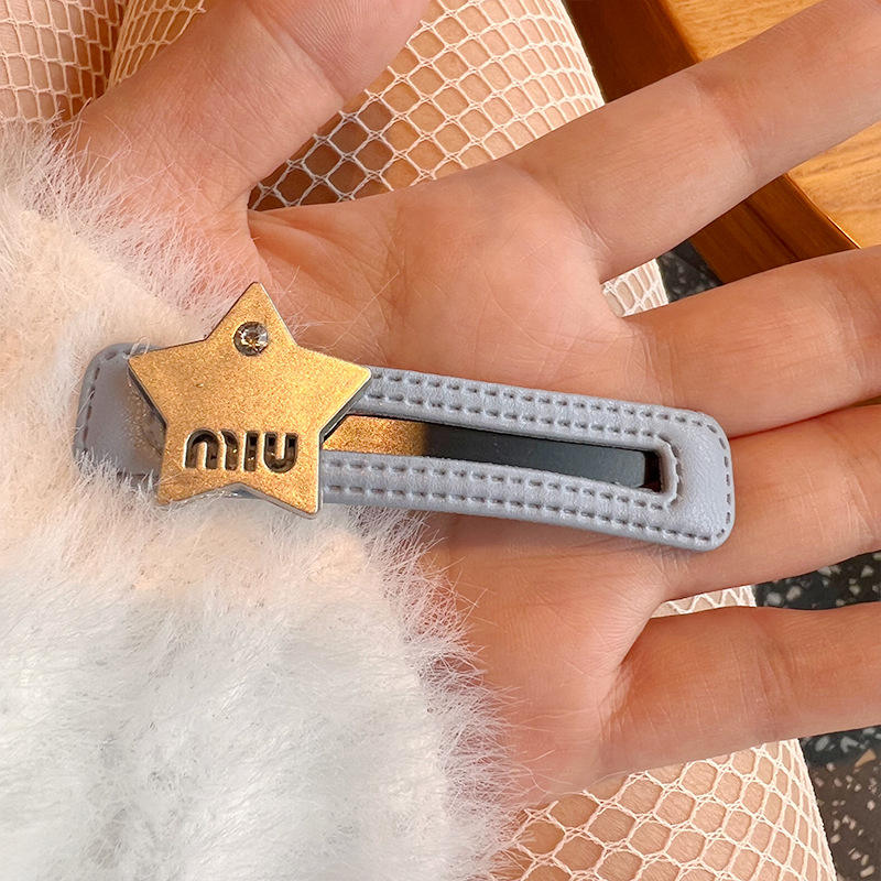 Pinza para el pelo de una sola línea con flecos laterales, de cuero con diseño de rombos sencillos estilo coreano INS y letra de estrella metálica