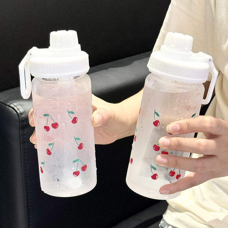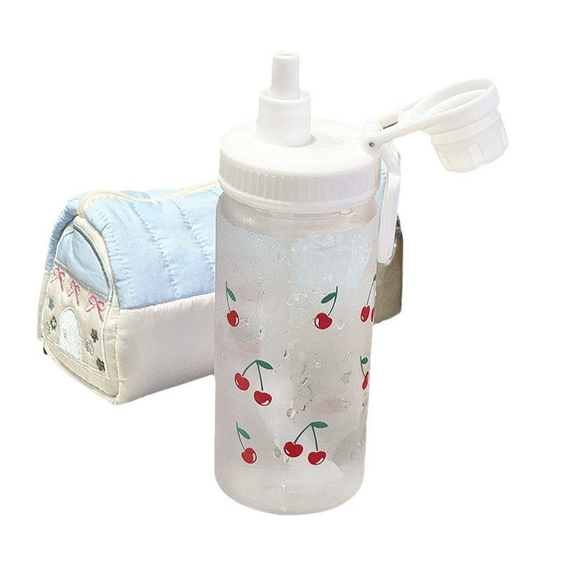 Botella de agua con pajita de gran capacidad, estilo INS, diseño creativo de cereza, portátil, de plástico, para la escuela y viajes.