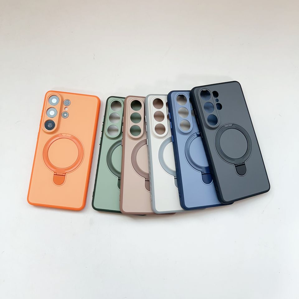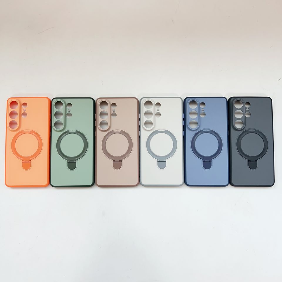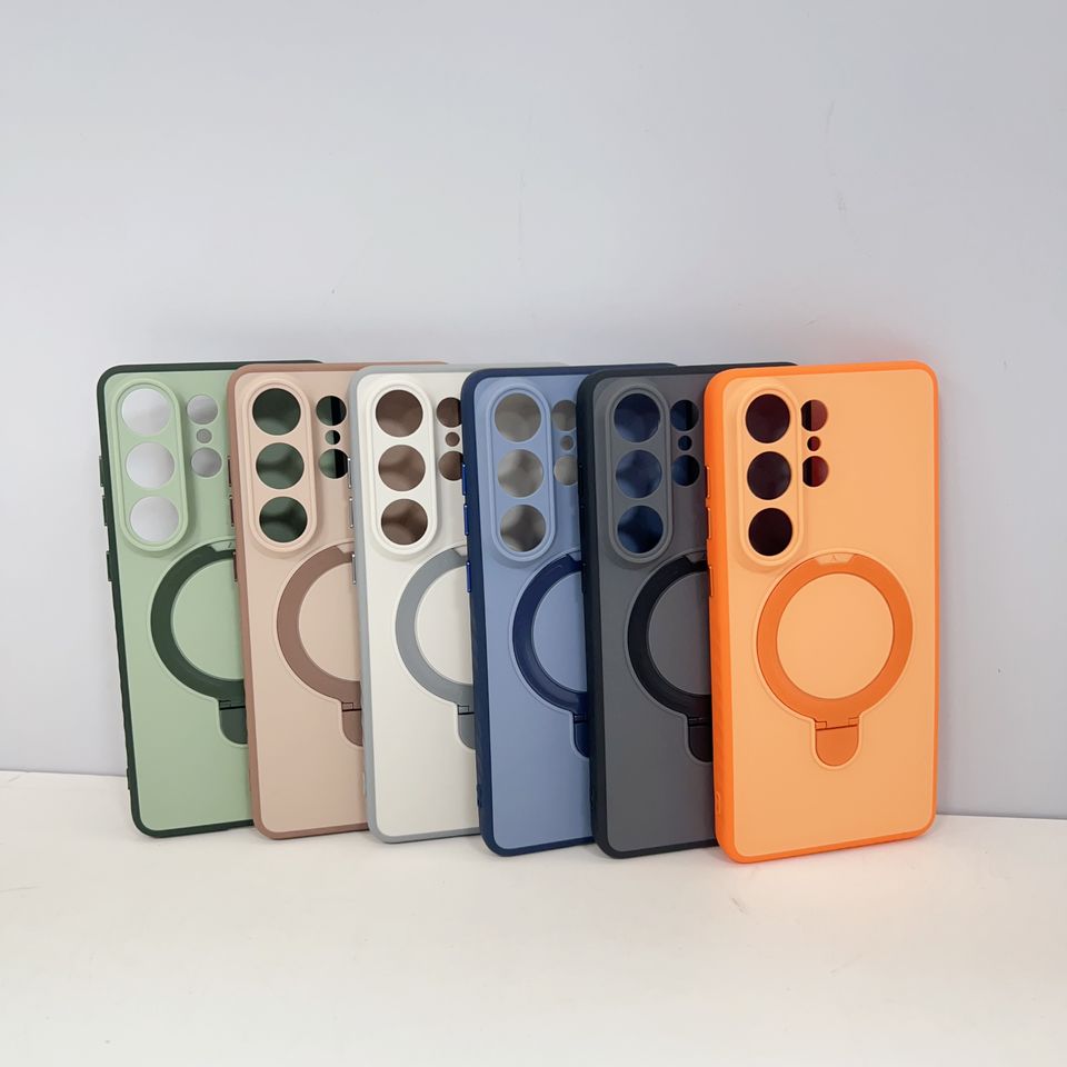 Funda Magnética Plegable Estilo INS con Soporte Metálico y Laterales Antideslizantes de TPU con Tacto de Piel para Samsung S26 S25 S24 ULTRA