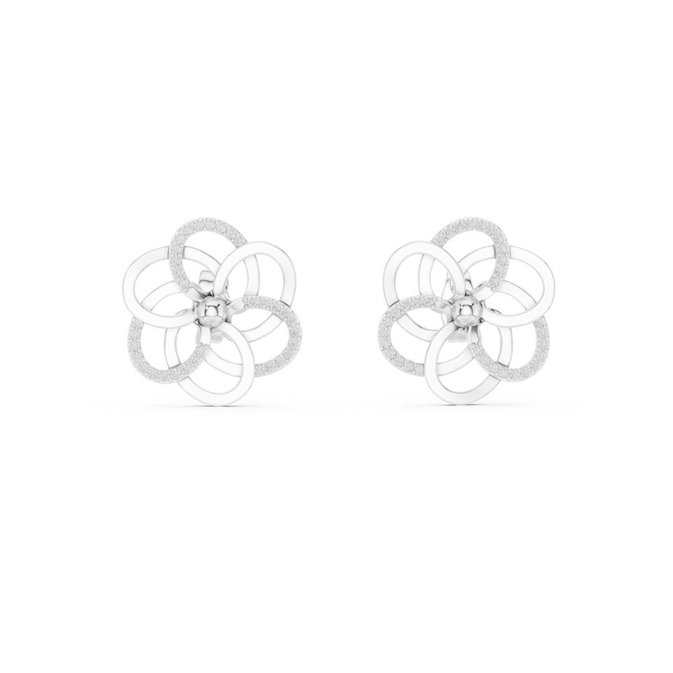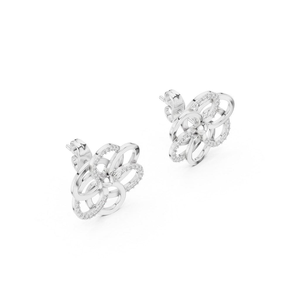 Juego de pendientes de diamantes cultivados en laboratorio con diseño floral entrelazado en oro blanco de 18 quilates para mujer, para compromiso, boda, fiesta, regalo de San Valentín, uso diario