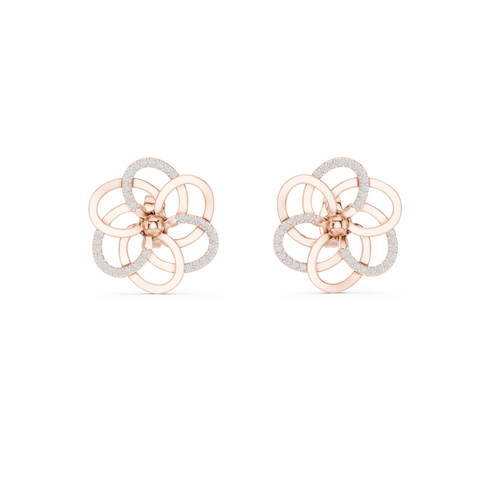 Juego de pendientes de diamantes cultivados en laboratorio con diseño floral entrelazado en oro rosa de 18 quilates para mujer, para compromiso, boda, fiesta, regalo de San Valentín, uso diario