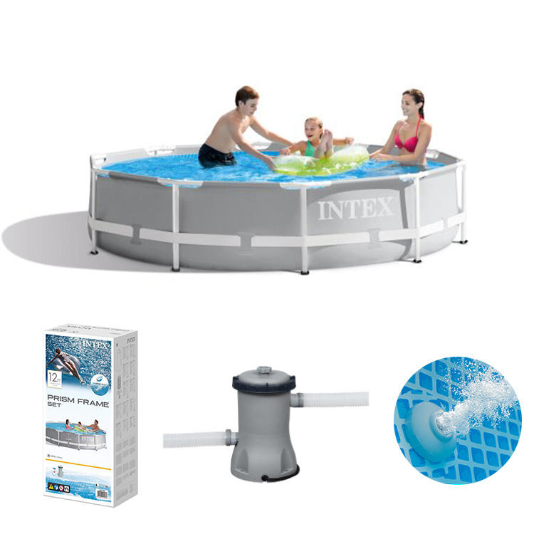 INTEX 26702 Ultra Prism Frame PVC Piscina Redonda Elevada de 10FT X 30IN para Familias, Adultos, Niños y Recién Nacidos con Bomba de Filtro