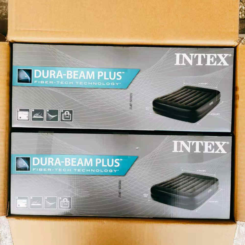 Colchón Inflable INTEX 64124 Comfort Queen Size Pillow Rest, Camas Plegables para Acampar en Interiores y Exteriores, Colchón de Aire con Bomba Integrada