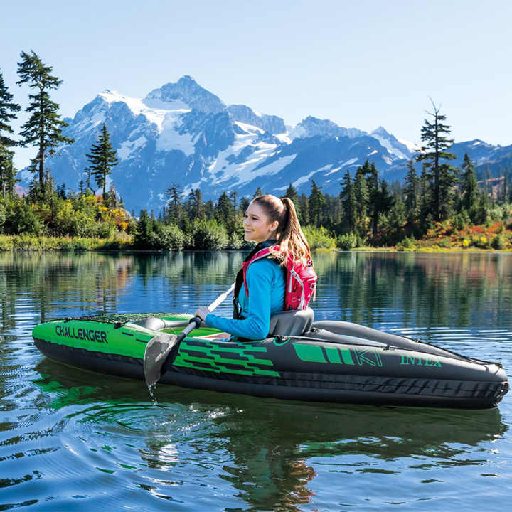 INTEX 68305 CHALLENGER K1 Kayak de pesca inflable con pedales Kayak inflable para sentarse en la parte superior KAYAK para DRIFTING y COMPETICIÓN