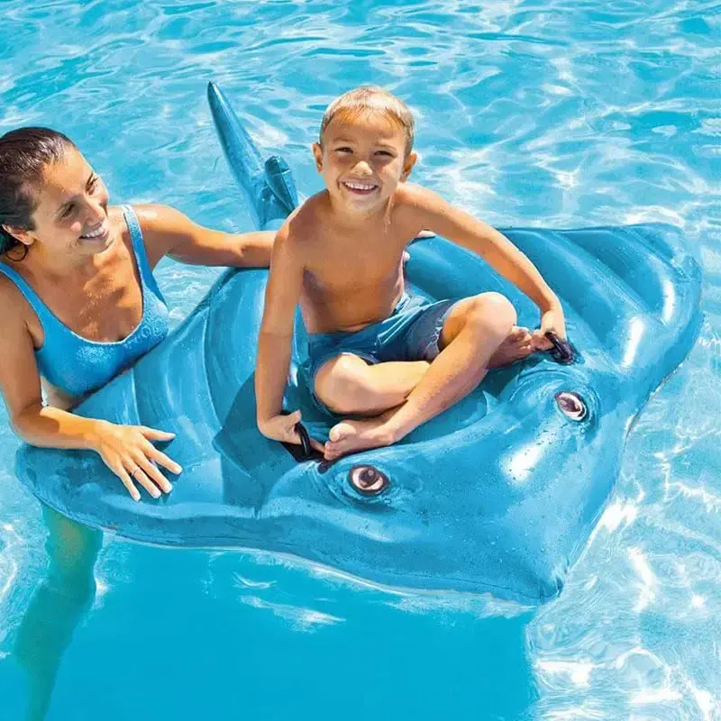INTEX Juego Infantil Inflable Stingray Piscina Tumbona Azul 185x145cm Colchón