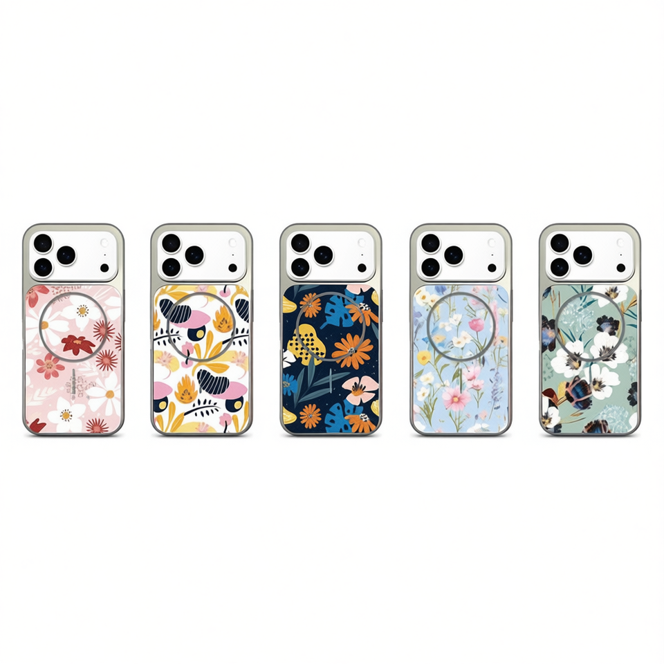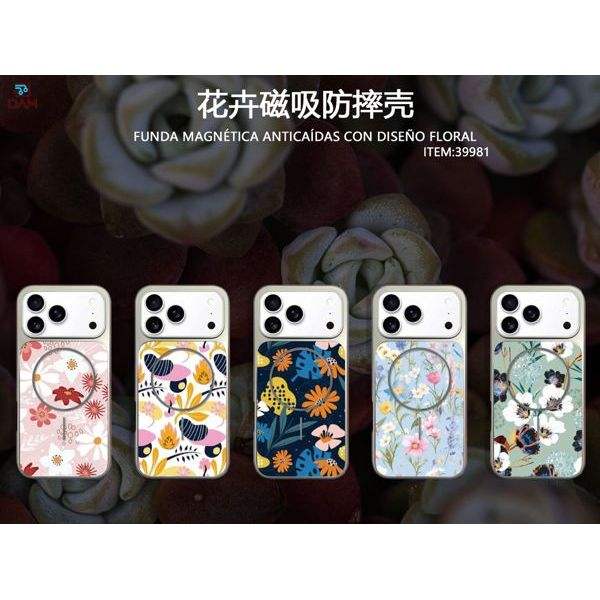 Funda Magnética Anti-Caídas para IP 13 Pro Max, Material TPU+PC, Diseño Floral Chinoiserie Sublimable, con Soporte para Teléfono