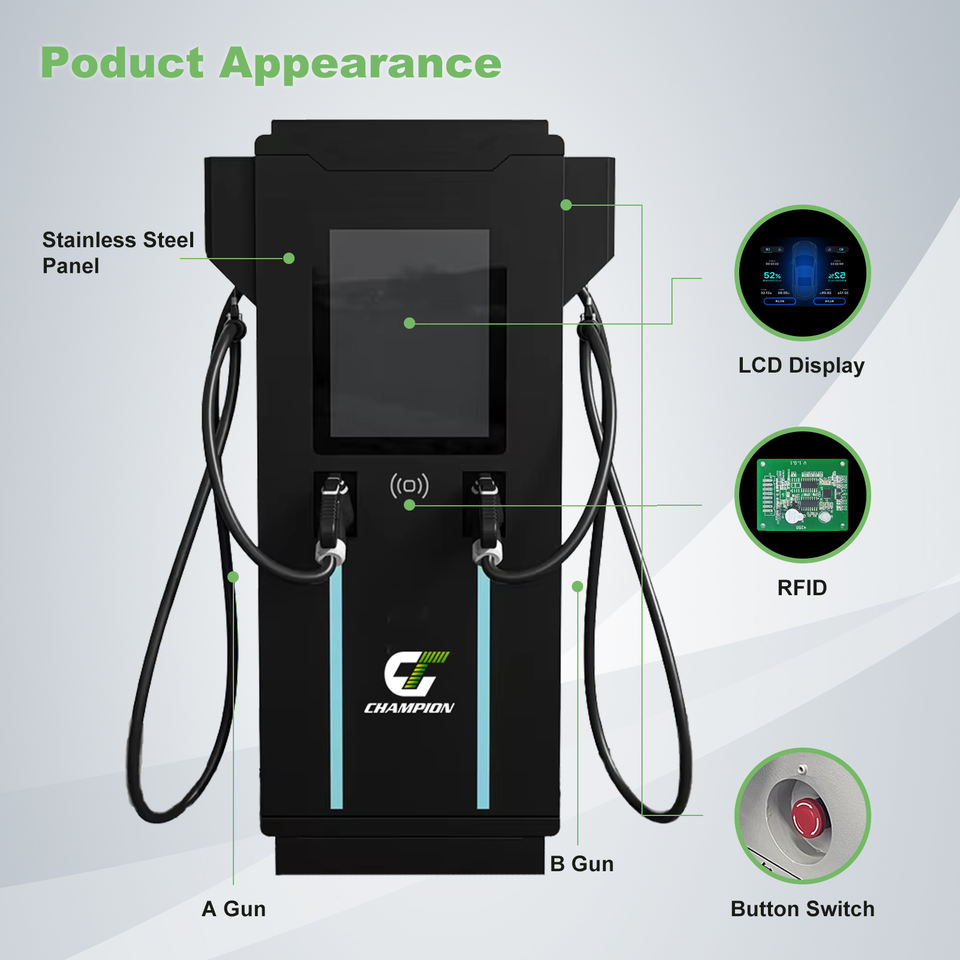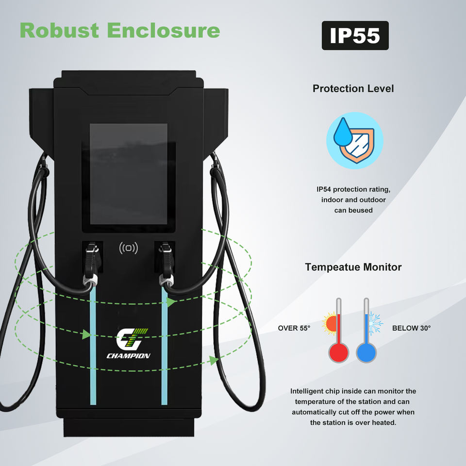Estación de Carga Rápida DC para Exteriores con Clasificación IP 55, 60KW 80KW 120KW 160KW 180KW 240KW, CCS 1/CCS 2/CHAdeMO/GB/T para Uso Comercial