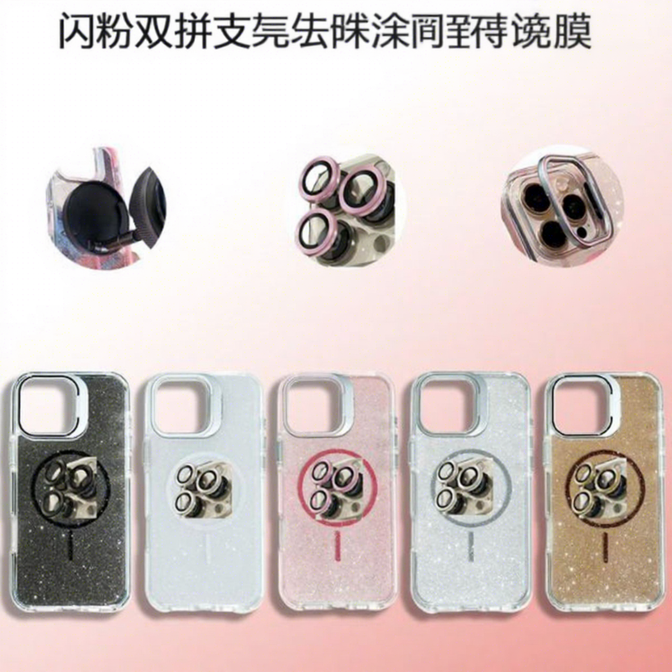 Funda Protectora Brillante IP16E de Doble Material con Soporte y Lente para Teléfonos Móviles