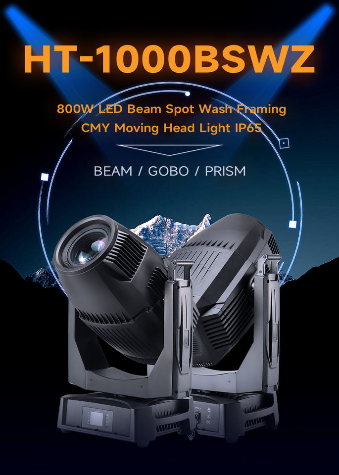 Luz Móvil de Cabeza IP65 para Exteriores HT-1000BSWZ 800W LED, Perfil de Haz, Spot, Wash, CMY 5en1