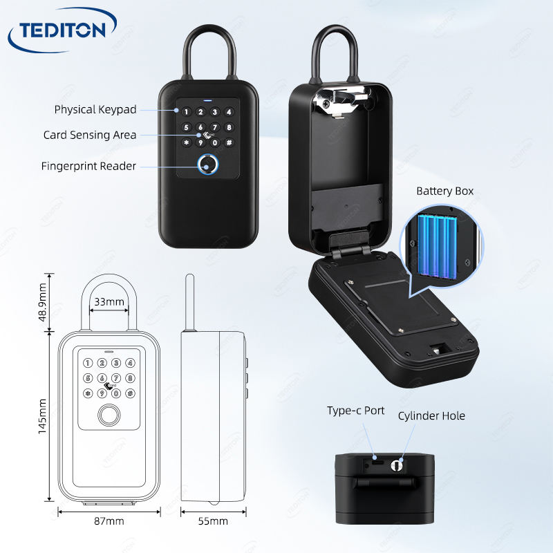 Cajas de Seguridad con Cerradura Inteligente TTlock, Impermeables IP65, sin Llave, Modelo K5F, con Lector de Huellas Dactilares, Código y Chip, para Airbnb y Hoteles