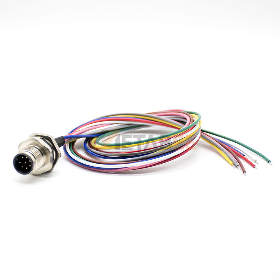 Conector Macho de Montaje Trasero IP67 M12 de 8 Pines con Codificación A, Cable Previamente Conectado de 24 AWG para Codificador y E/S de Señal