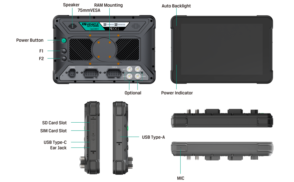 Interfaz:RS232, RS485, CANBUS, RJ45, ACC, DC, GPIO, AHD opcionales