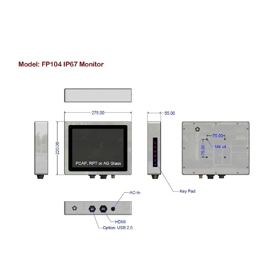 Monitor de 10.4 Pulgadas con Protección IP67, Industrial, para Exteriores, Ambientes Hostiles, Vidrio PCAP/RTP/AG, Atenuación Automática, Control Remoto IR, Aluminio