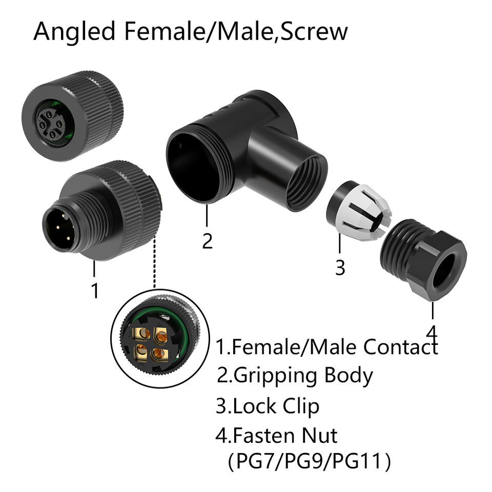 IP67 a prueba de agua M12 montaje de instalación en campo conector de plástico tornillo rosca enchufe 4/5/8 pines ángulo recto macho hembra conector